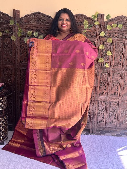 Onion Pink Kanjivaram Silk Saree | Weaving Border With Peacock Butta | Handloom | Silk Mark Certified