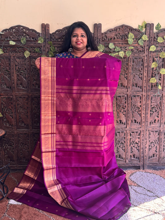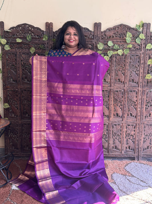 Pure Kanjivaram Silk Saree | Purple With Gold Zari Border | Handloom | Silk Mark Certified