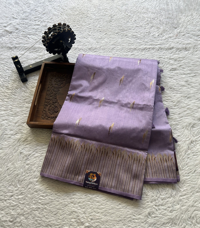 - SAREE: Explore the charm of a Saree Lilac colored Elegantly Paired with a Zari border.