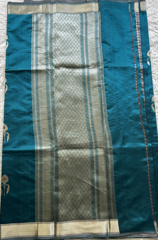 Banarasi Katan Silk Saree Sea Blue Colored Elegantly Paired with a Zari border.