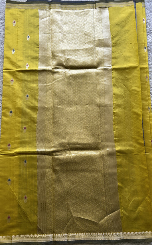 Banarasi Kora Saree Honey Yellow Colored Complemented with a Machine Embroidered Border.