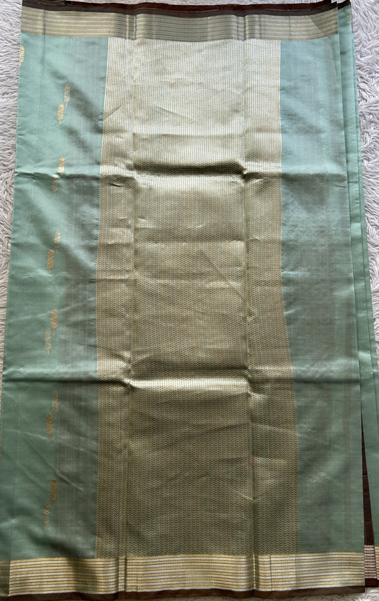 Banarasi Katan Silk Saree Pastel Green Colored Complemented with a Light Gold Zari border.
