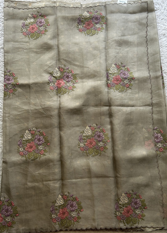 Banarasi Kora Saree Elephant Gray Colored Complemented with a Machine Embroidery And Scallop Border.