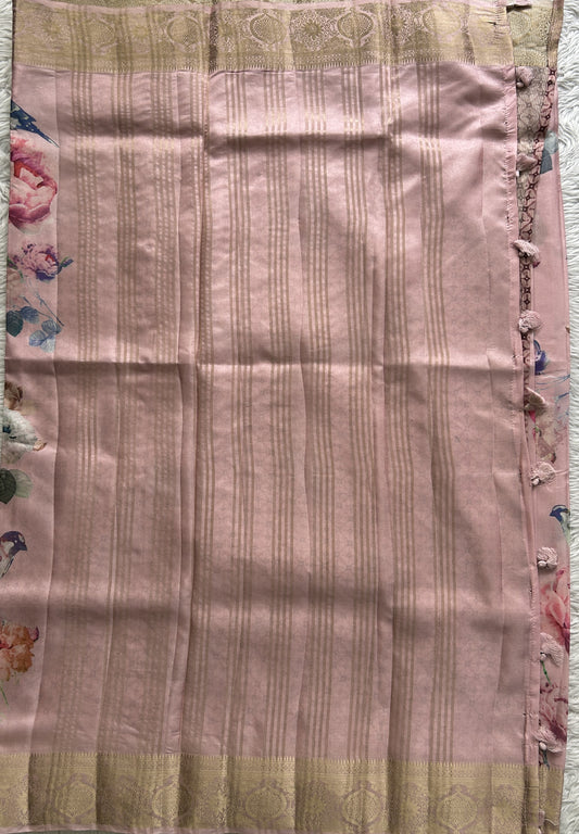 Banarasi Soft Silk Saree Baby Pink Colored Complemented with a Zari Border.