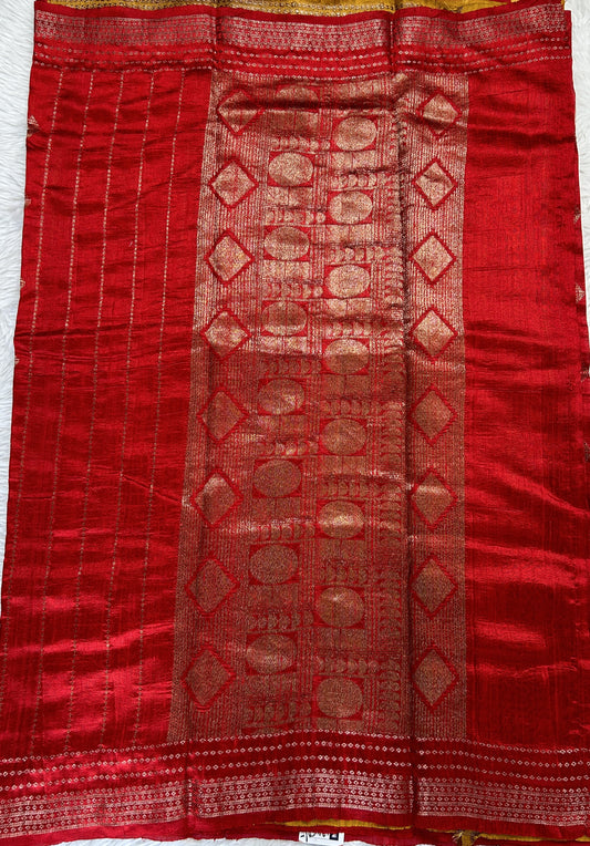 Banarasi Semi Katan Saree Red Colored Complemented with a Zari Border.