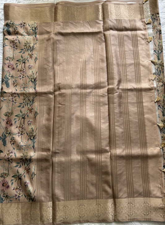 Banarasi Soft Silk Saree Beige Colored Complemented with a Zari Border.