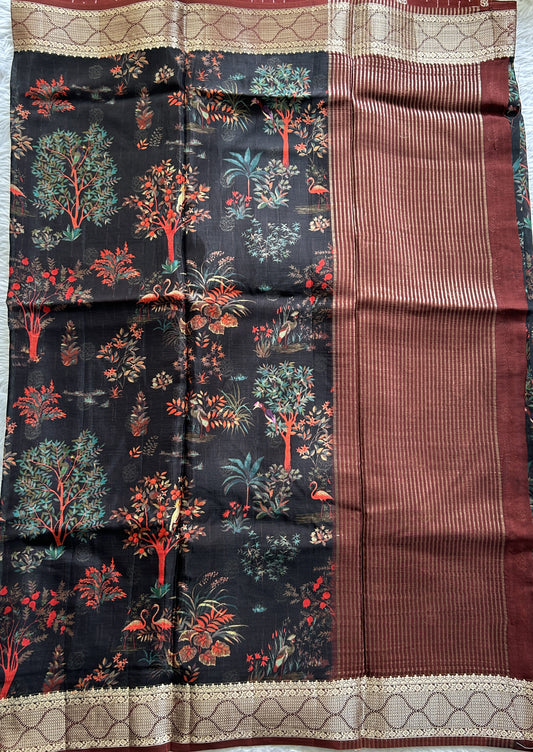 Banarasi Semi Katan Saree Black Colored Complemented with a Zari Border.