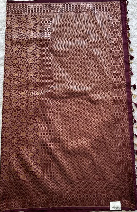 Banarasi Semi Katan Saree Burgundy Colored Complemented with a Zari Border.