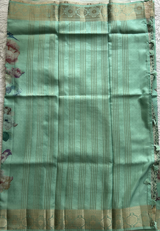 Banarasi Soft Silk Saree Aqua Green Colored Complemented with a Plain Border.