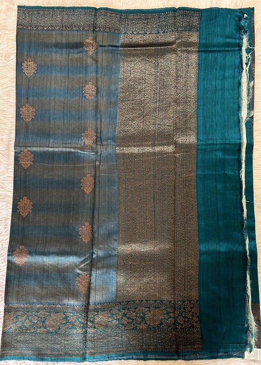 Banarasi Raw Silk Sarees Teal Blue Colored Complemented With a Intricate Weaving Border