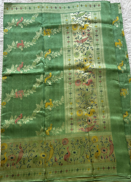 Banarasi Tissue Kora Saree Pastel Green Colored Complemented with a Zari Border.