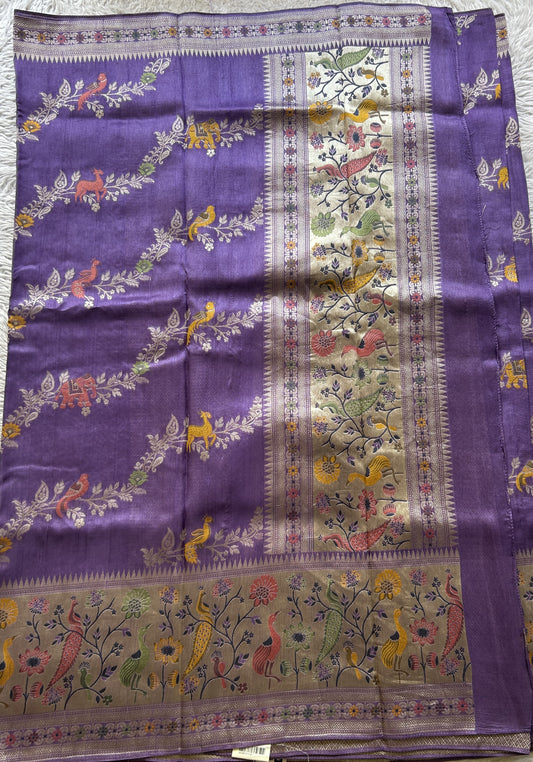 Banarasi Tussar Georgette Allover Saree Purple Colored Exquisite Zari Border.
