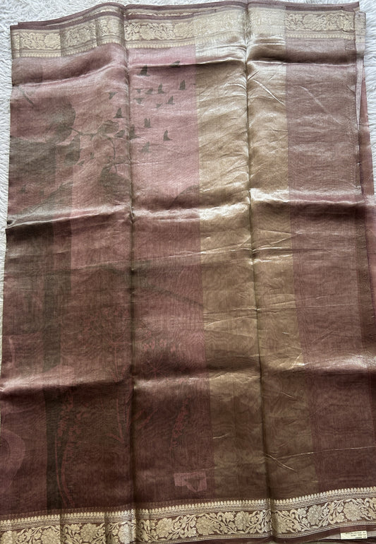 Banarasi Tissue Kora Saree Wine Colored Complemented with a Zari Border.