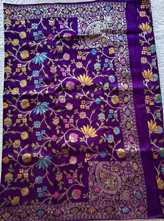 Banarasi Tussar Georgette Allover Saree Deep Violet Colored Paired with a Zari Border.