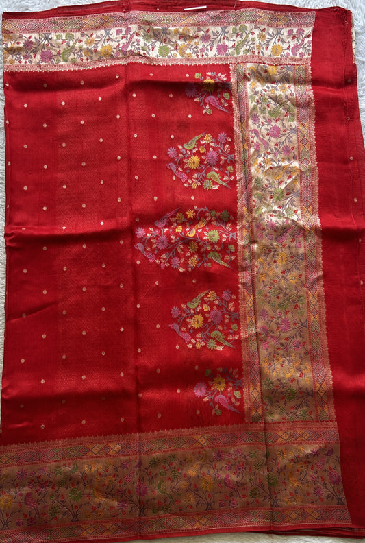 Banarasi Tussar Georgette Saree Red Colored Exquisite Zari Border.