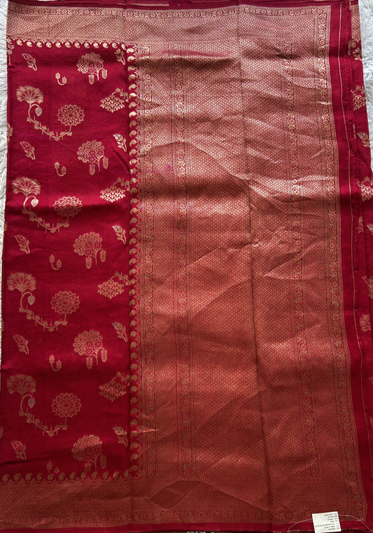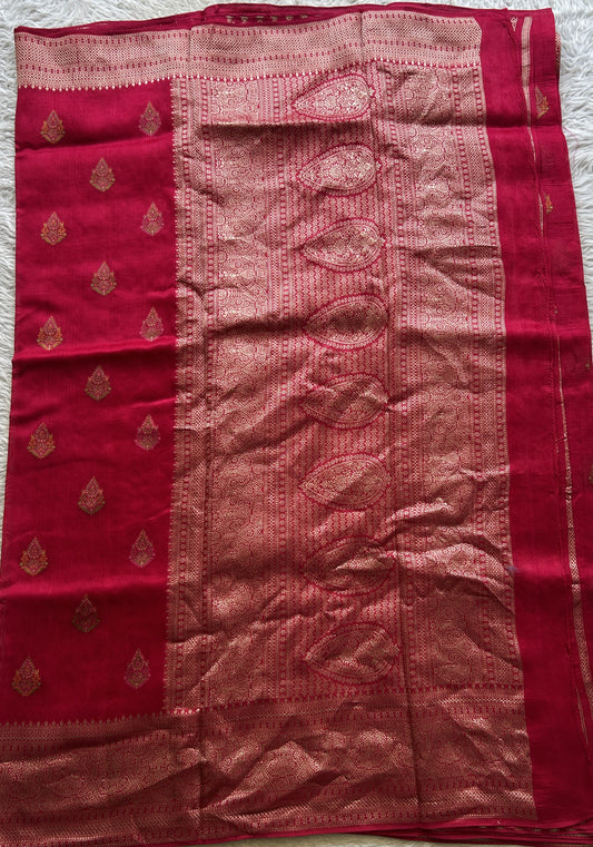 Banarasi Tussar Georgette Saree Red Colored Exquisite Zari Border.