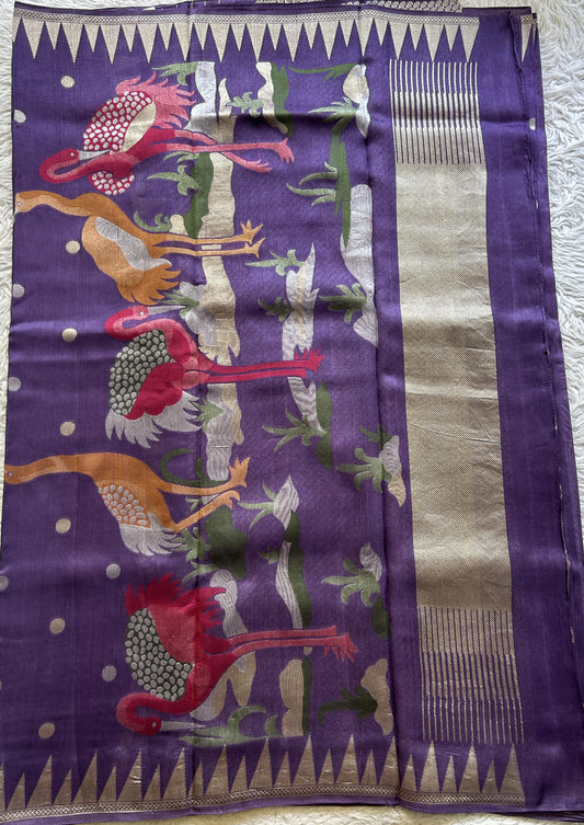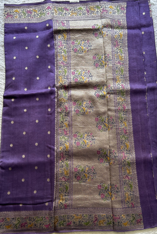 Banarasi Tussar Georgette Saree Dark Violet Colored Paired with a Temple Border.