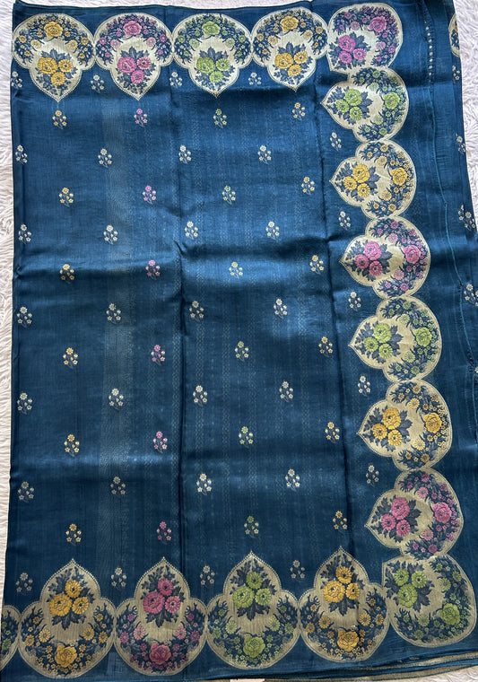 Semi Tussar Tissue Saree Sea Blue colored complemented with a Zari Border.