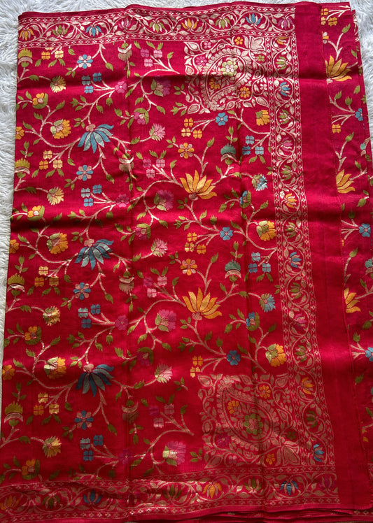 Banarasi Tussar Georgette Saree Red Colored Complemented with a Minakari border.