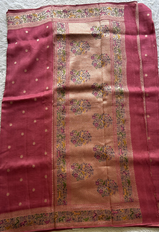 Banarasi Tussar Georgette Saree Onion Pink Colored Paired with a Minakari Border.