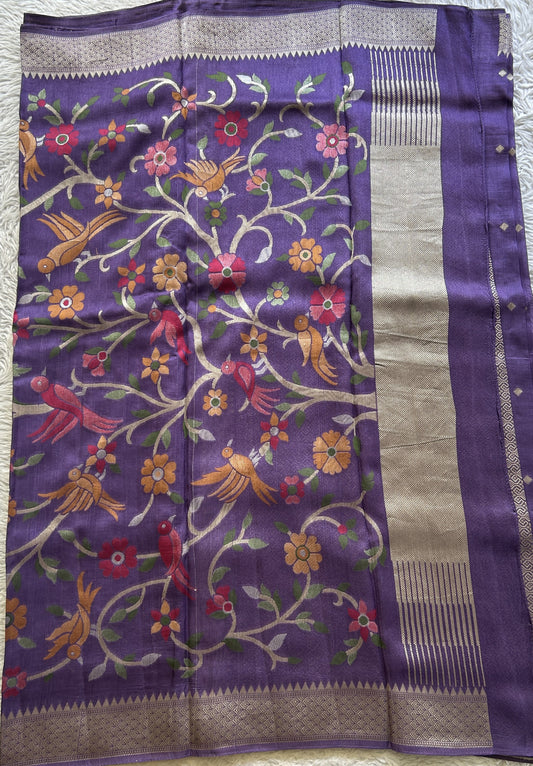 Banarasi Tussar Georgette Saree Deep Lilac Colored Complemented with a Minakari border.
