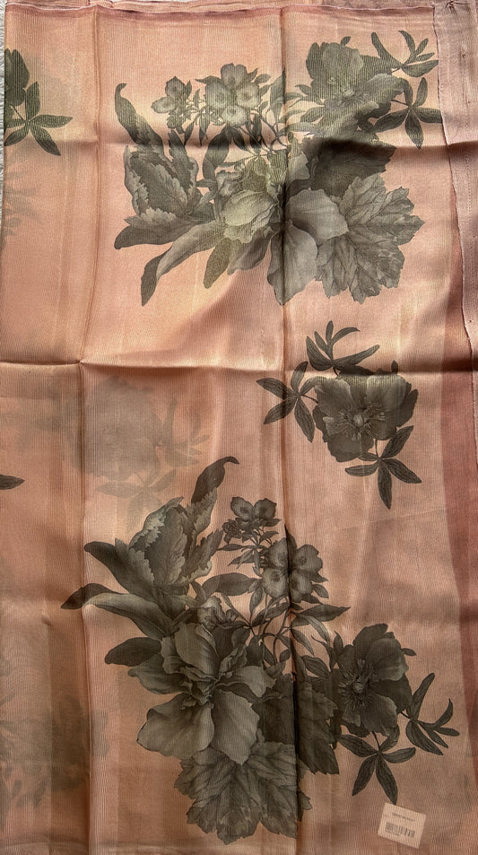 Banarasi Fancy Kota Peach Colored Borderless Saree Complemented With Digital Print.