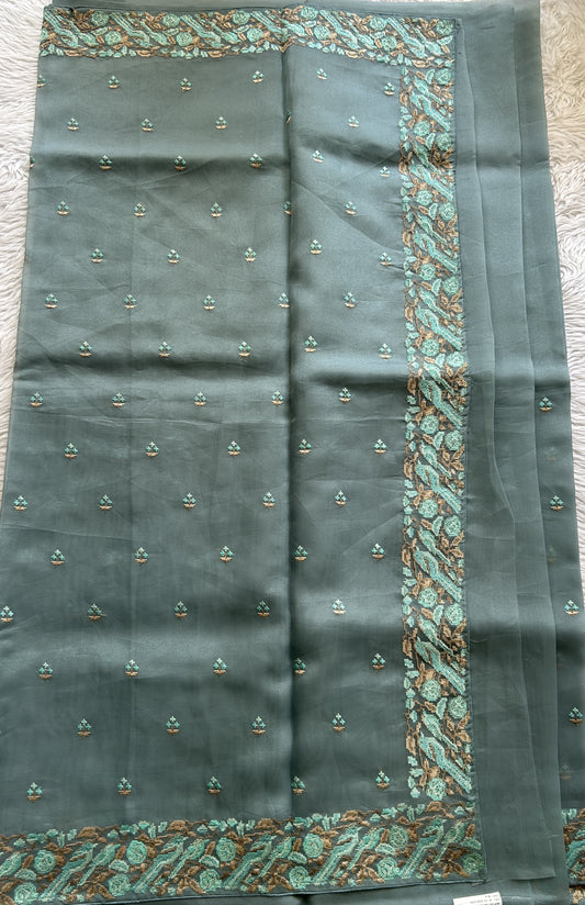 Banarasi Fancy Saree Aqua Blue Colored Complemented with a Zari Border.