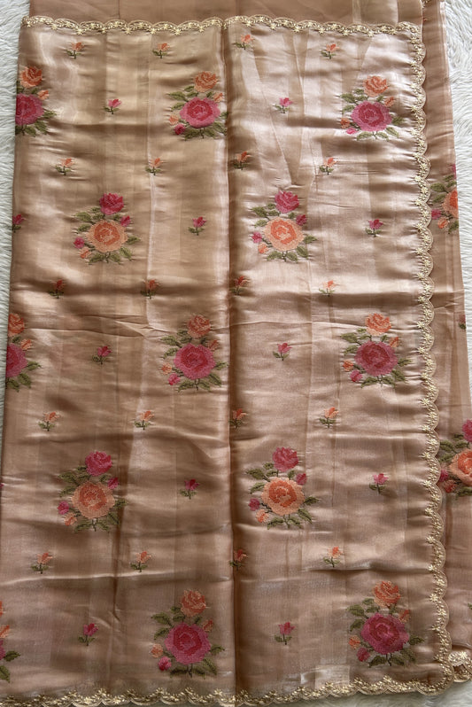 Tissue Organza Saree Light Baby Pink Colored Complemented with a Borderless.