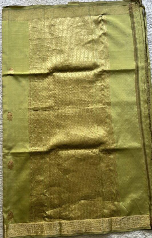 Banarasi Katan Silk Saree Light Olive Green Colored Elegantly Paired with a Zari border.