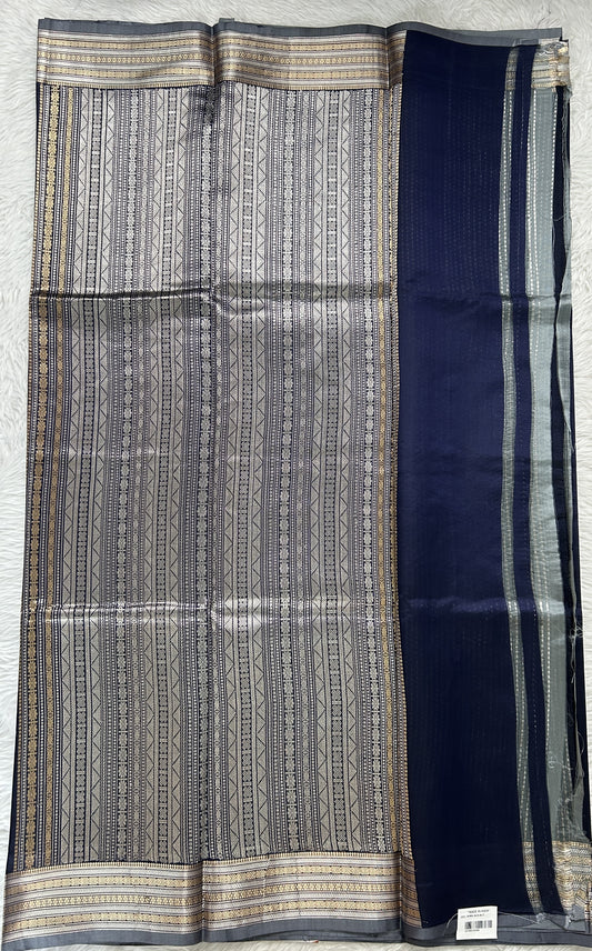 Banarasi Katan Silk Saree Navy Blue Colored Complemented with a Gold Zari border.