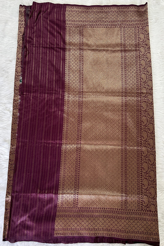 Banarasi Katan Silk Saree Burgundy Colored Elegantly Paired with a Zari border.