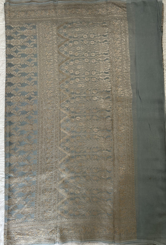 Banarasi Georgette Saree Gray Colored Complemented with a Zari Border.