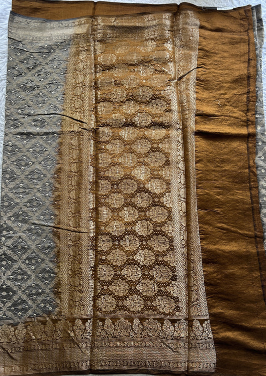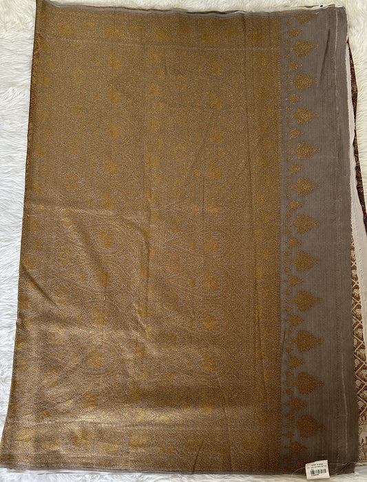 Banarasi Chiniya Silk Saree Gray Colored Complemented with a Ochre Color Zari Border.