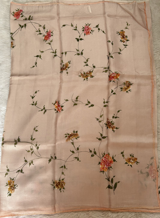 Silk kota Saree Coral color complemented with a Borderless Saree.