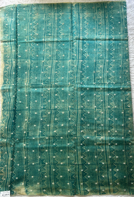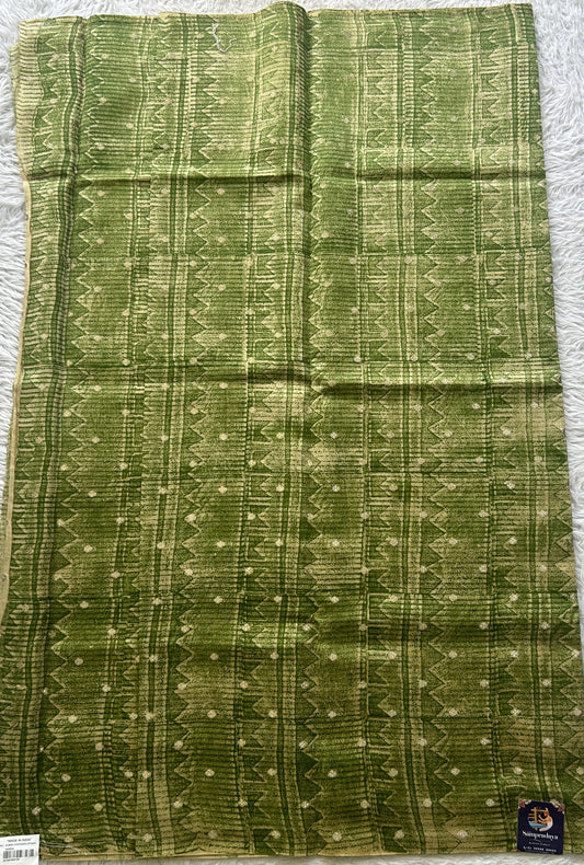 Chanderi Cotton Dress Material Green Colored Complemented with a Borderless.