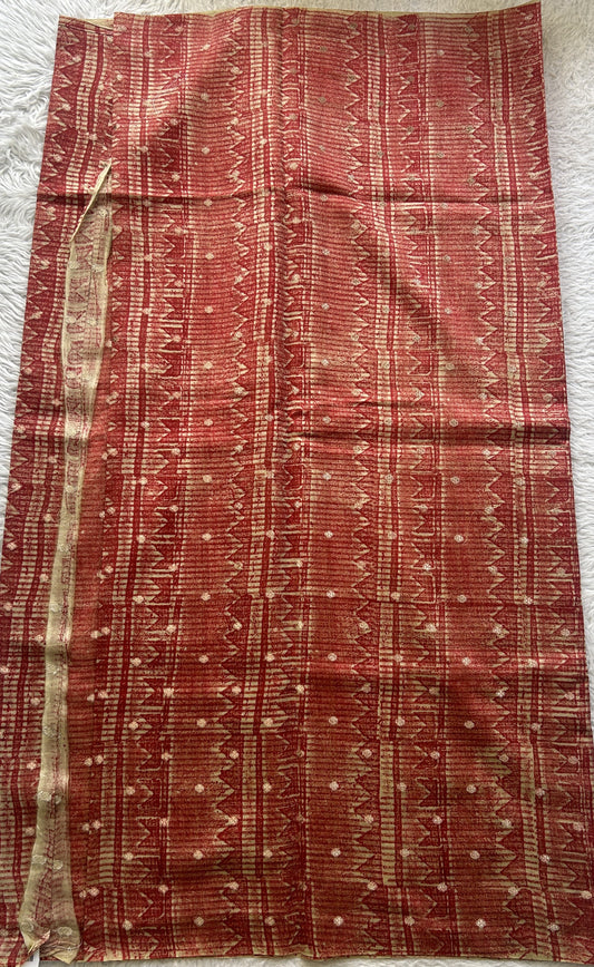 Banarasi Tussar Georgette Saree Red Colored Exquisite Zari Border.