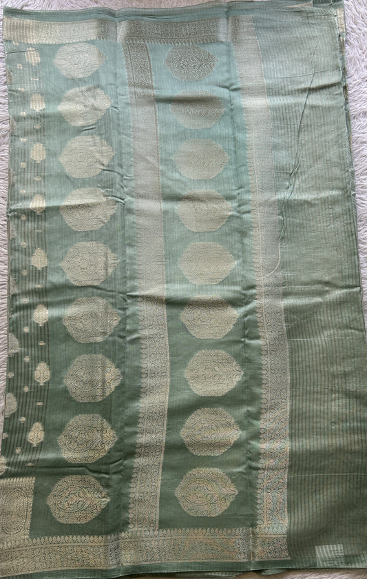 Maheshwari Chanderi Cotton Saree Sea Green Colored Elegantly Paired with a Zari Border.