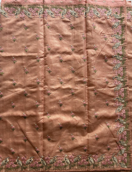 Maheshwari Chanderi Cotton Saree Peach Colored Elegantly Paired with a Zari Border.