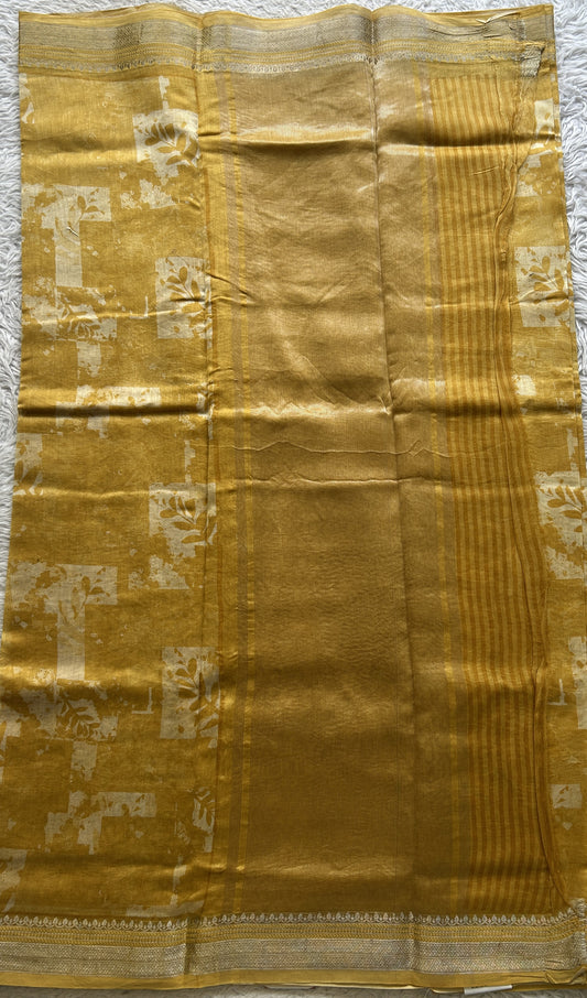 Maheshwari Chanderi Cotton Saree Yellow Colored Elegantly Paired with a Zari Border.