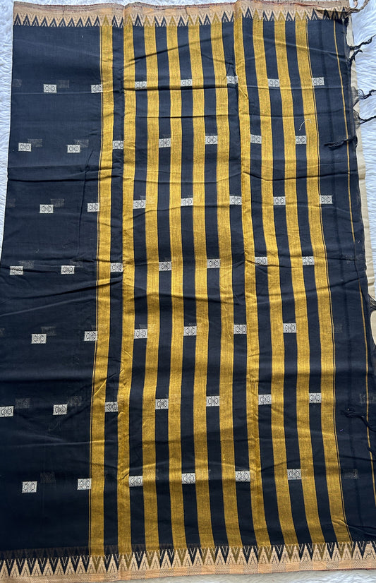 Narayanpet Cotton Buti Saree Black Colored Complemented with a Thread Border.