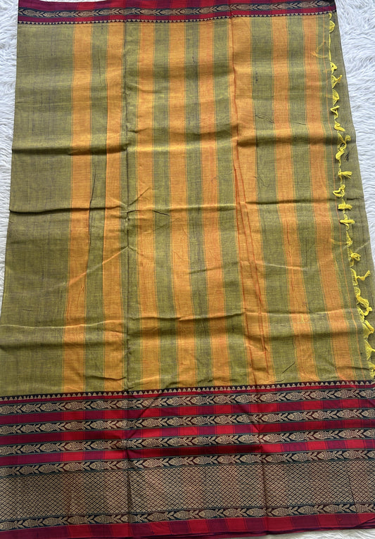 Narayanpet Cotton Saree Avocado Colored Complemented with a Thread Border.
