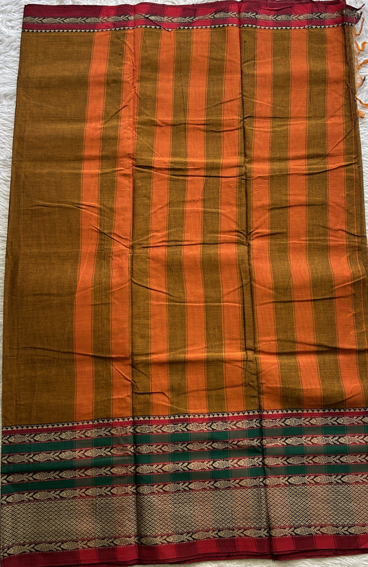 Narayanpet Cotton Saree Copper Colored Complemented with a Double Thread Border.