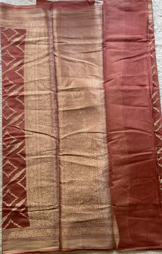 Maheshwari Chanderi Cotton Saree Dark Peach Colored Elegantly Paired with a Zari Border.