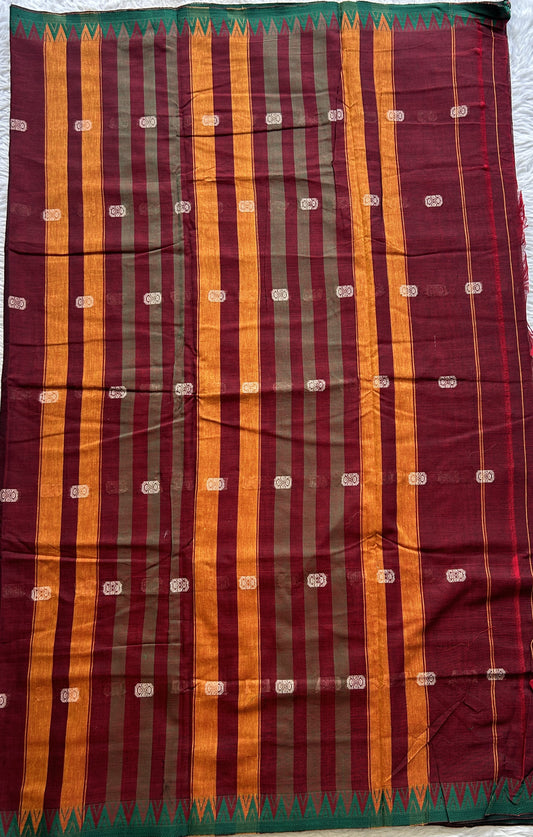 Narayanpet Cotton Saree Dark Maroon Colored Complemented with a Thread Border.
