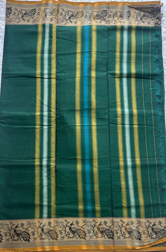 Narayanpet Cotton Saree Dark Green Colored Complemented with a Minakari Thread Border.