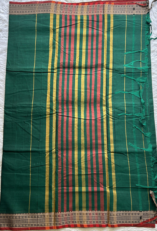 Narayanpet Cotton Saree Forest Green Colored Complemented with a Thread Border.