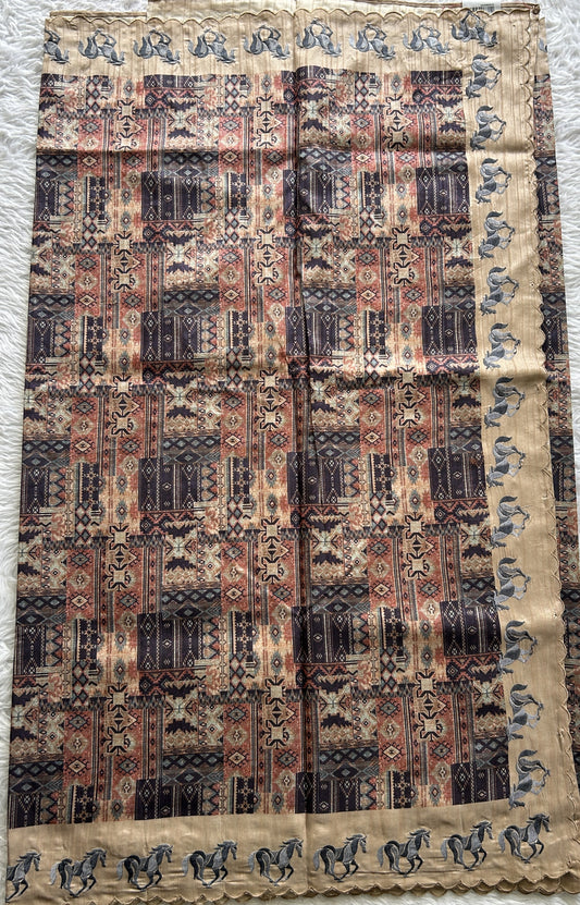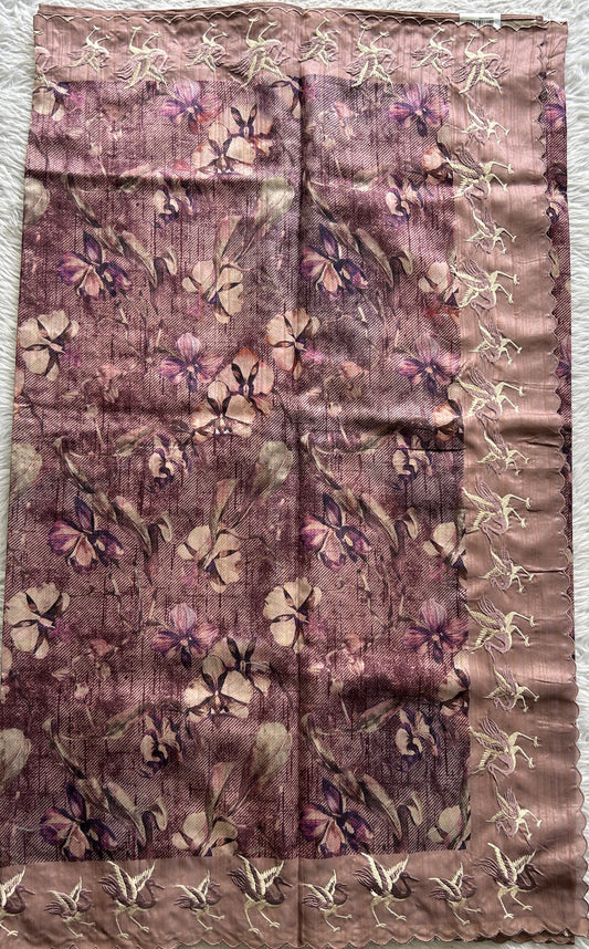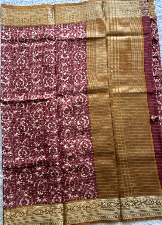 Semi Tussar Saree Light Maroon Colored complemented with a Beige Color Scallop Border.