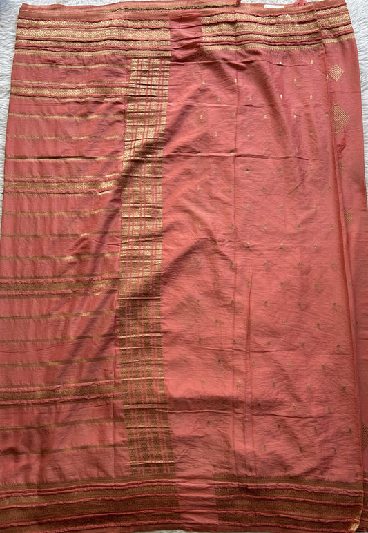 Semi Georgette Saree Dark Peach Colored Complemented with a Zari Border.