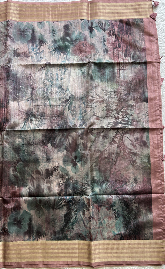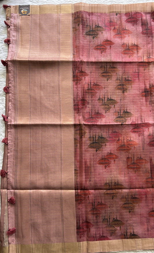Semi Tussar Saree Onion Pink Colored complemented with a Zari Border.