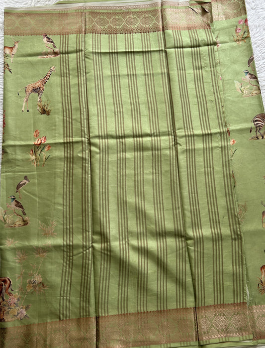Semi Tussar Saree Green Colored complemented with a Zari Border.